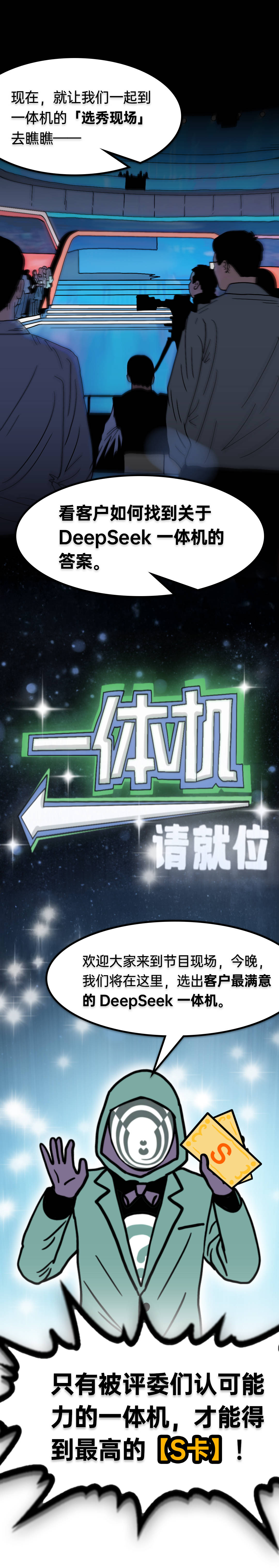 现在,让我们进入到漫画当中,跟随客户选出最满意的DeepSeek一体机,发放最好的【S卡】!