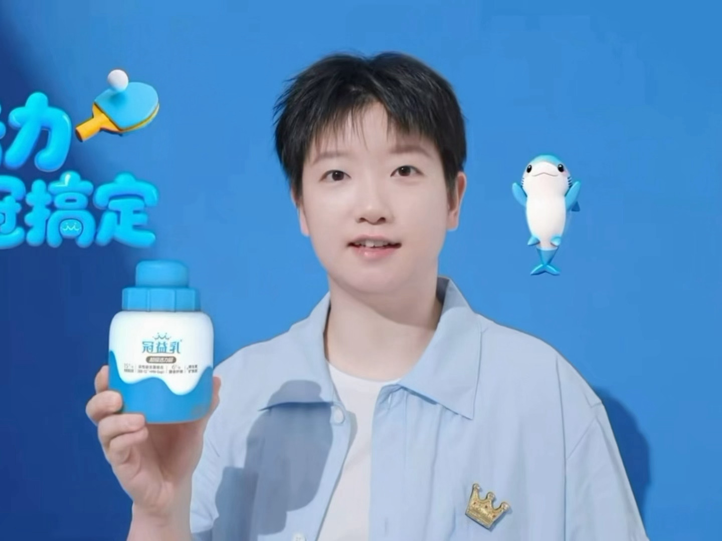 孙颖莎代言冠益乳 莎莎九连拍小鲨鱼也在旁边 孙颖莎冠益乳亚太区品牌代言人