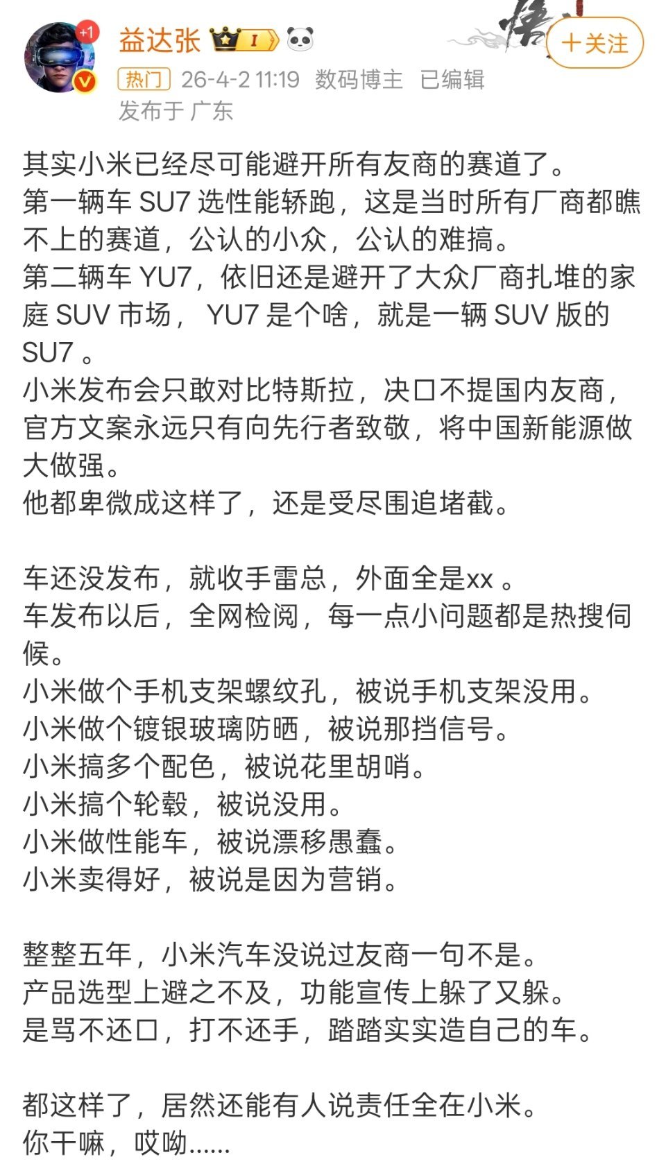 非常乐于看到这样的场面——小米汽车把特斯拉逼急了,鸿蒙智行把BBA逼急了。