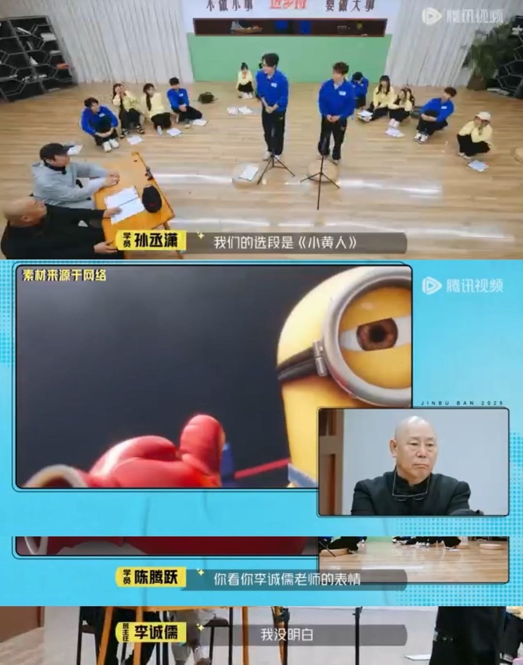 李诚儒看不懂孙丞潇配音小黄人 《进步班》里孙丞潇为配音小黄人,跪蒲团捏嘴超卖力,