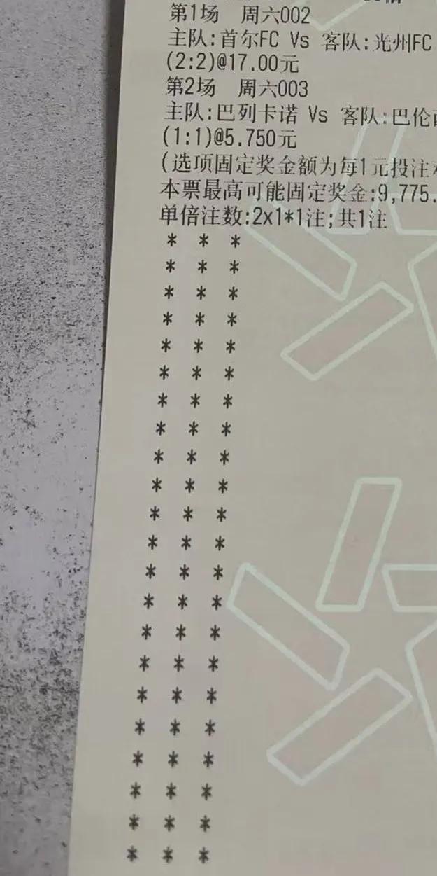 这是一张体育彩票的投注单。