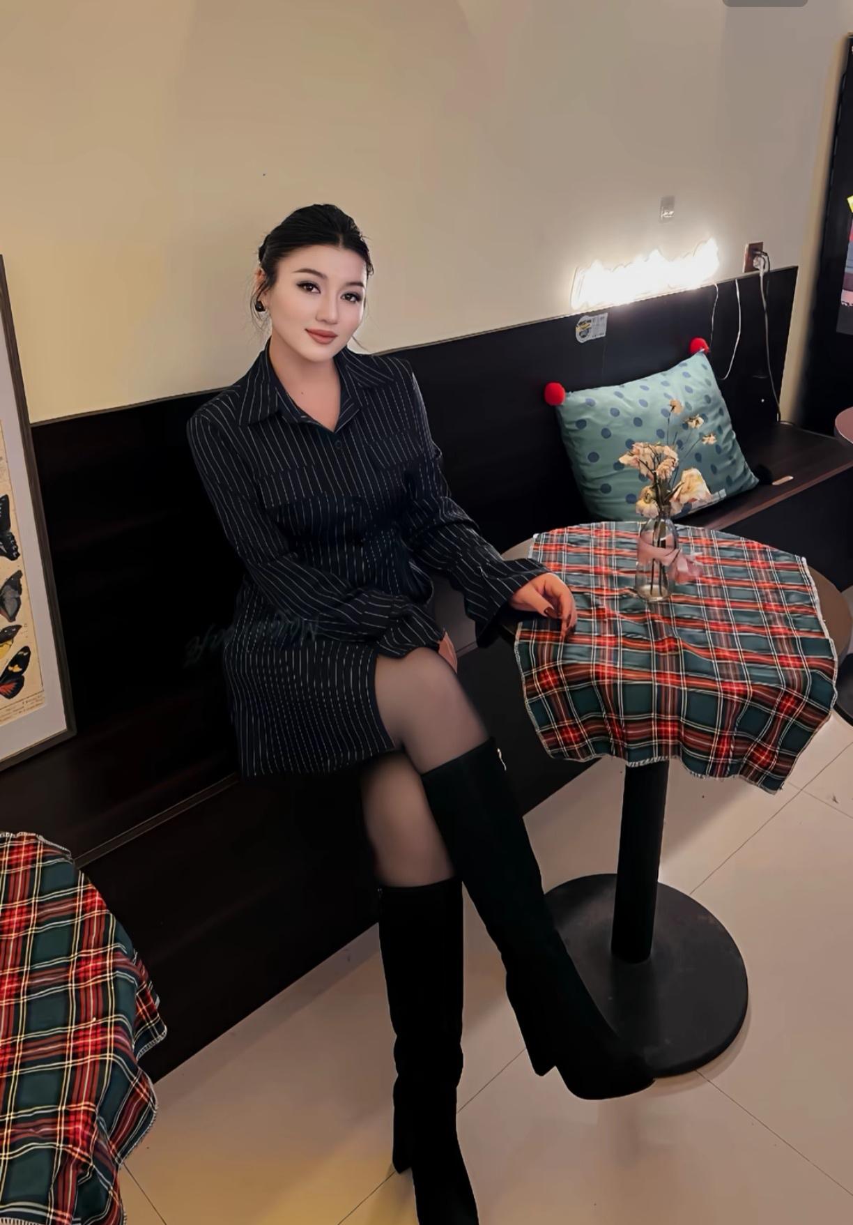 优雅复古风,灰色毛衣裙搭配黑色长靴,尽显时尚魅力!