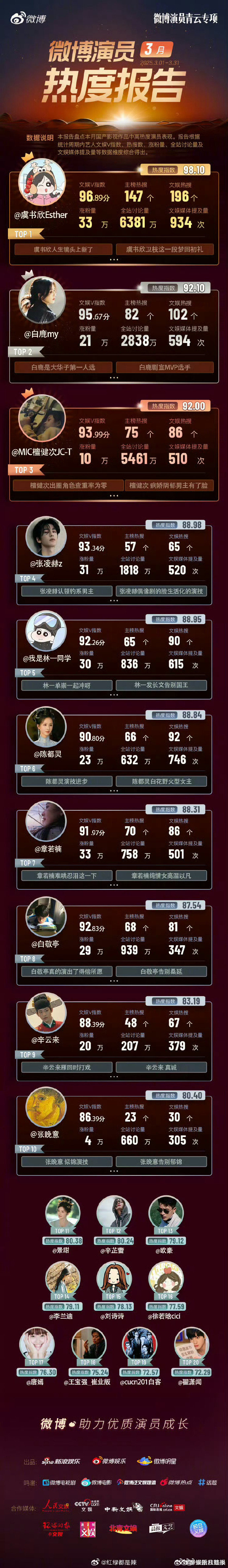 虞书欣3月微博演员热度TOP1天呐,虞书欣 3 月这成绩太耀眼了!微博演员热度登