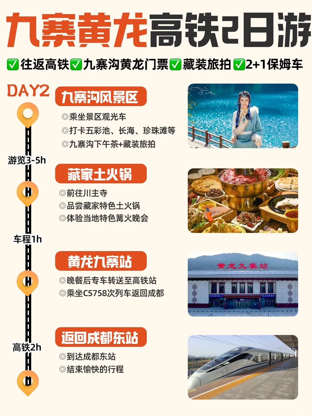 成都九寨沟黄龙3日高铁团🚄+藏族旅拍