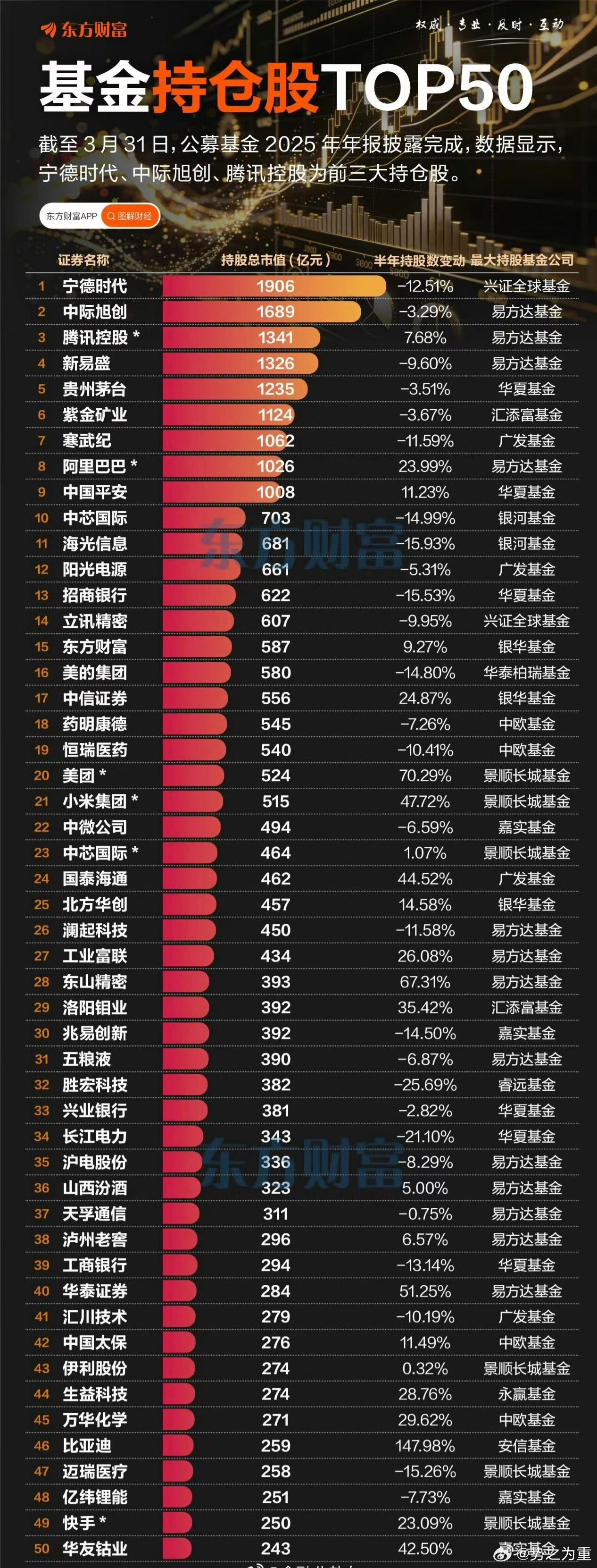 2026 一季度百亿主动选股私募前201. 汐泰投资:-27.8%2. 东方港湾