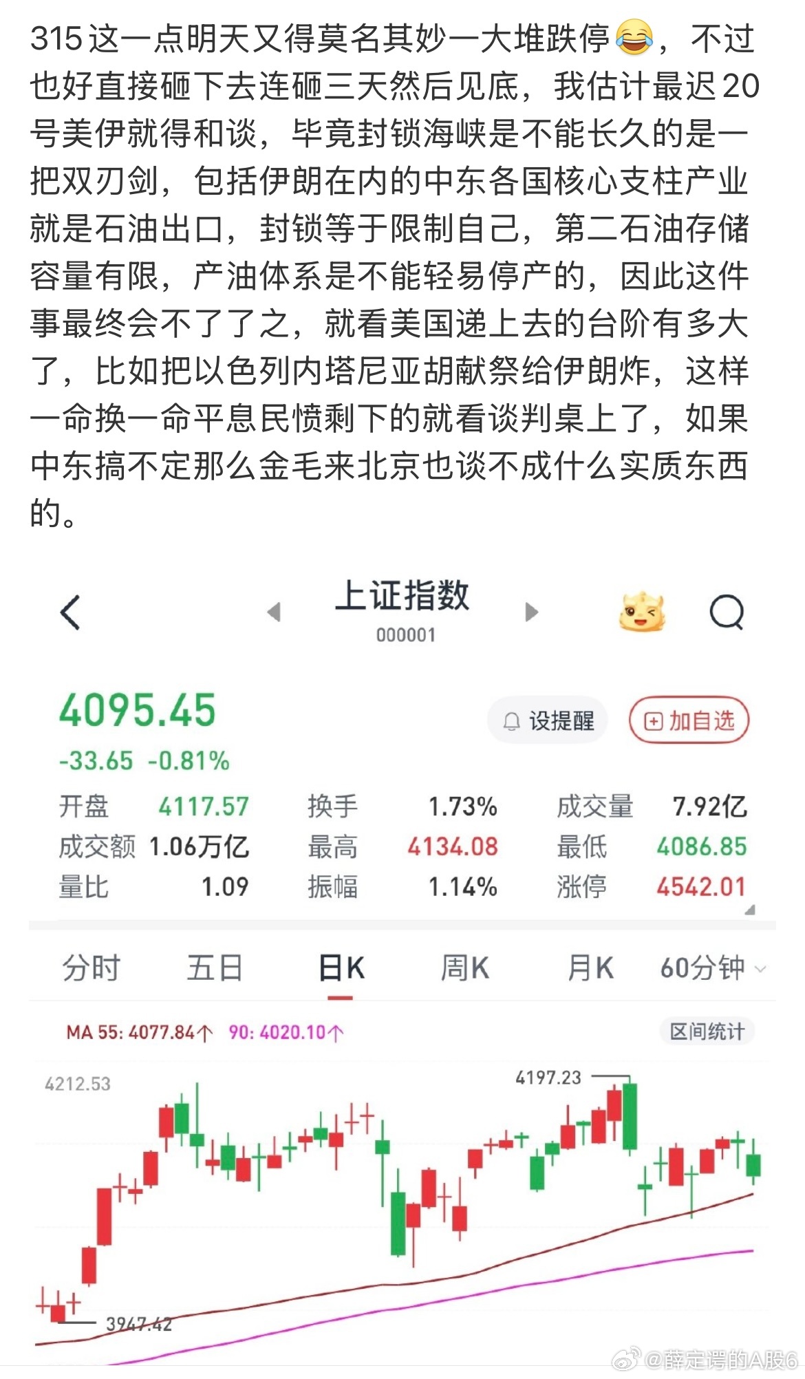 目前指数已经非常明确,4000点必破,任何短线都是离场的机会,长线股就没必要看盘