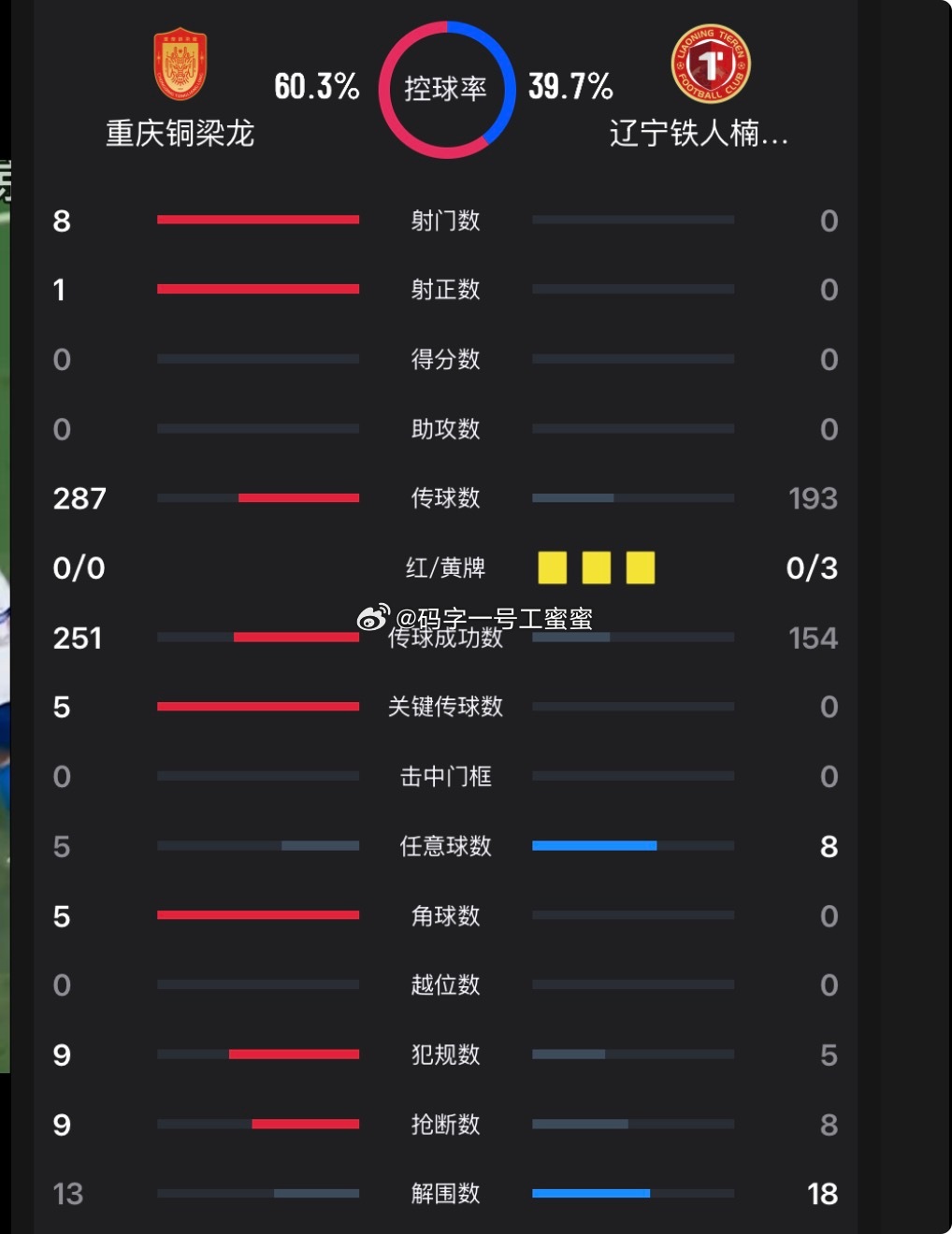射门比目前重庆6比0辽宁。