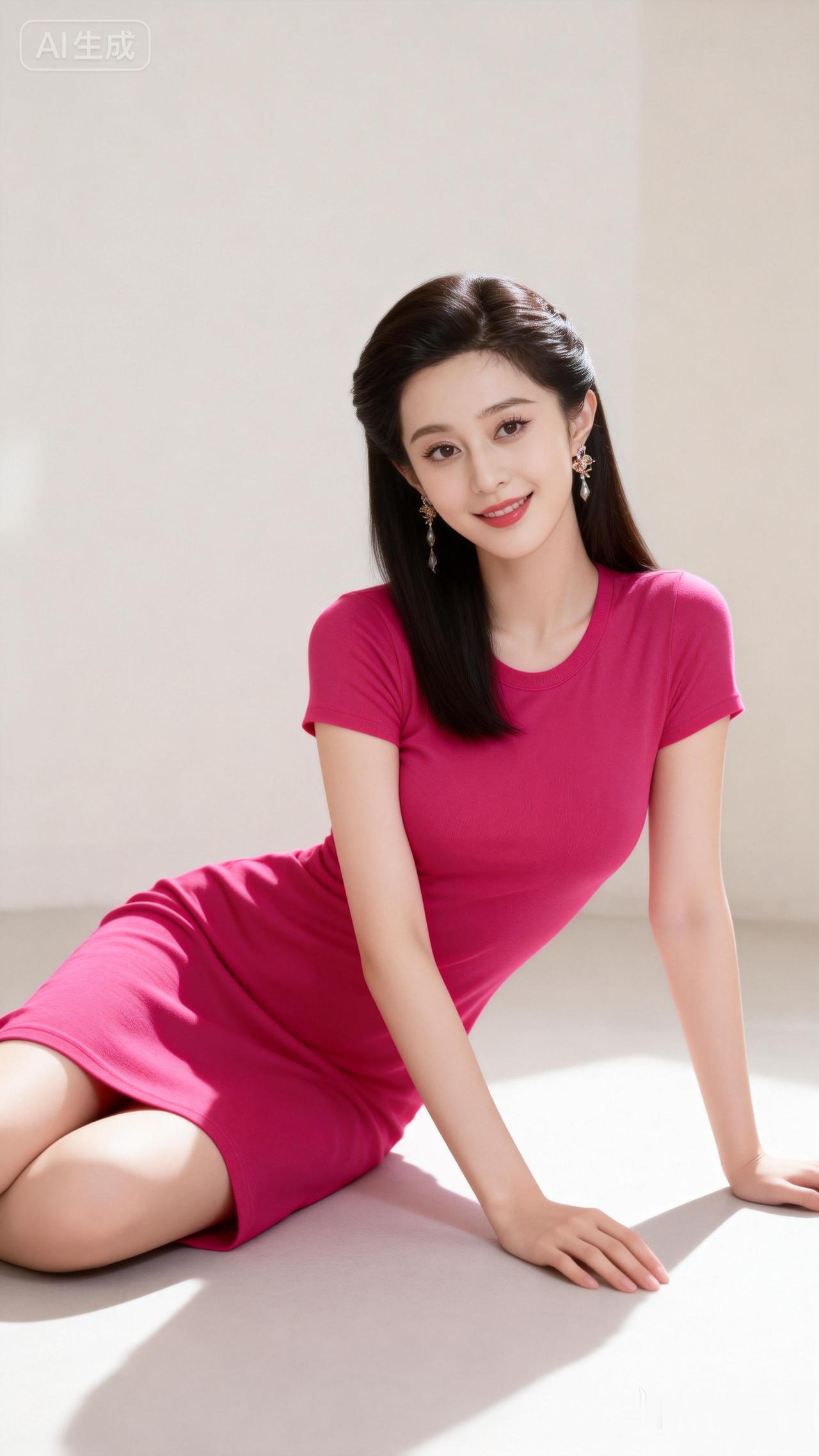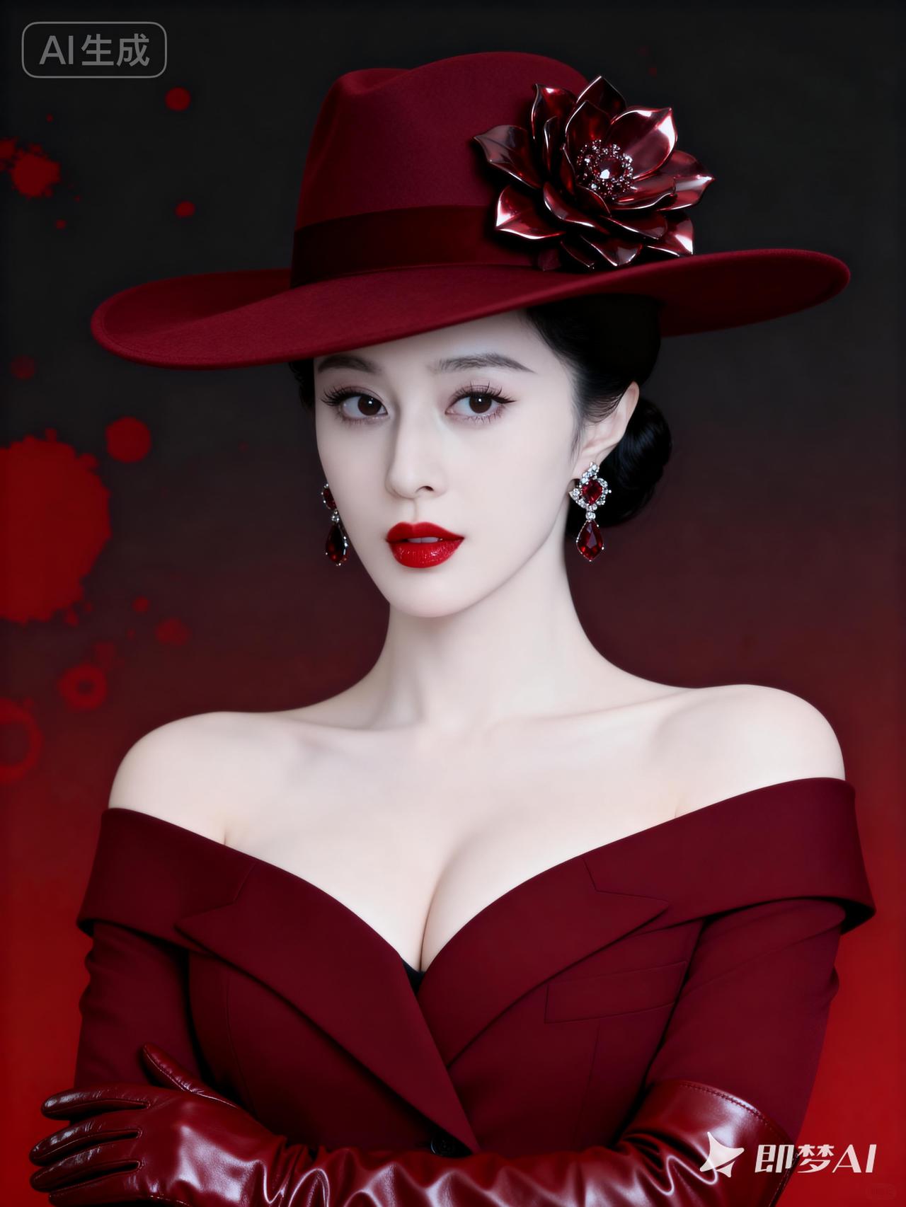 秋日山水间,红唇美人笑,传统与现代交融的时尚。