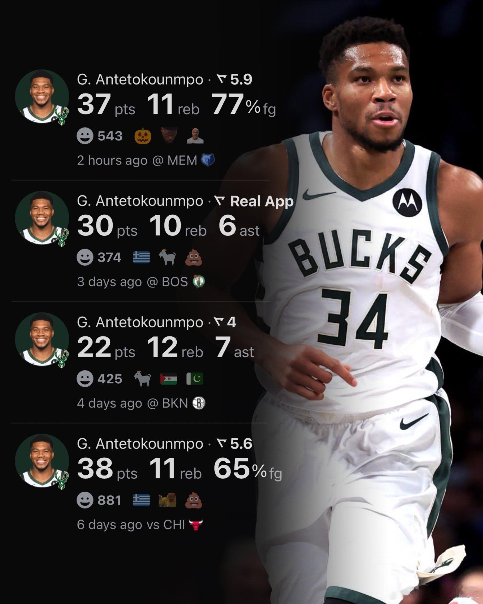 字母哥过去4场比赛的数据,场均两双!雄鹿开赛战绩1胜4负,最新战绩4连败!