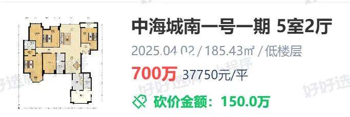 中海城南一号185户型,成交单价3.77万,在这价格面前,还有多少房源...