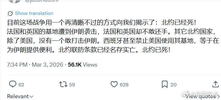 参议院多数党领袖图恩:在面对来自伊朗及其资助的恐布组织日益增强的恐怖威胁时,我们