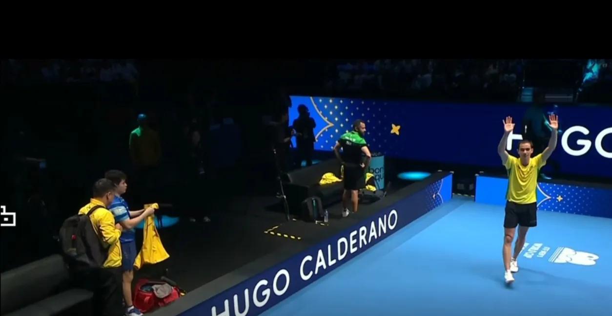 乒超联赛,樊振东3-0松岛辉空 比赛结束后,樊振东主动俯身捡起打飞的乒乓球交还给