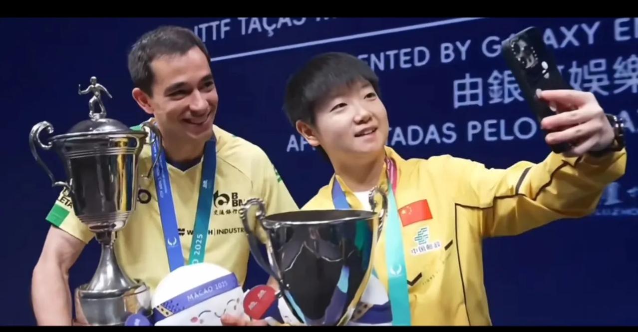 今日乒超,平野和孙颖莎组队双打,超级开心 平野连毛巾上也刻着孙颖莎 这真的比以往
