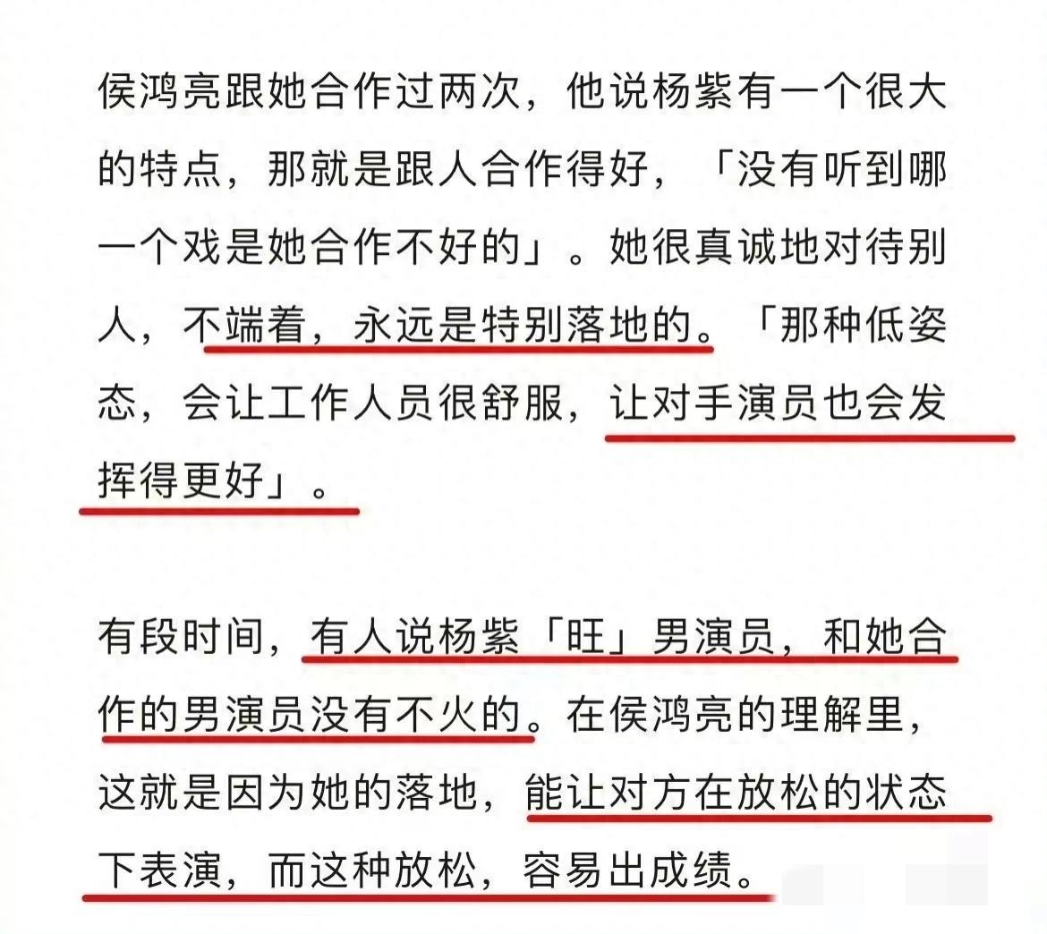 果然就像曾经和杨紫合作过《战长沙》的制片人侯鸿亮所评价杨紫的那样,他说:“杨紫为什么会旺男主,因为杨紫不端着,永远都是特别落地的,能让对方在放松的状态下表演,而这种放松,容易出成绩。”
