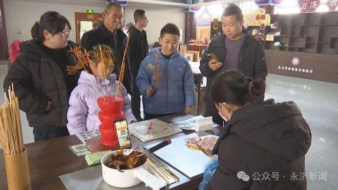 步入展厅,各项非遗技艺精彩纷呈。面塑摊上,孙悟空、白龙马等西游人物栩栩如生;吹糖人、画糖画摊位前甜香弥漫,非遗传人吹制出可爱的糖制生肖,以铜勺为笔勾勒出精美的糖画;木刻版画古朴雅致,传承人以刀代笔,精雕细琢,将鹳雀楼、黄河风光刻于木板之上。不少游客带着孩子沉浸式体验,在动手实践中感受传统手工艺的独特韵味。
