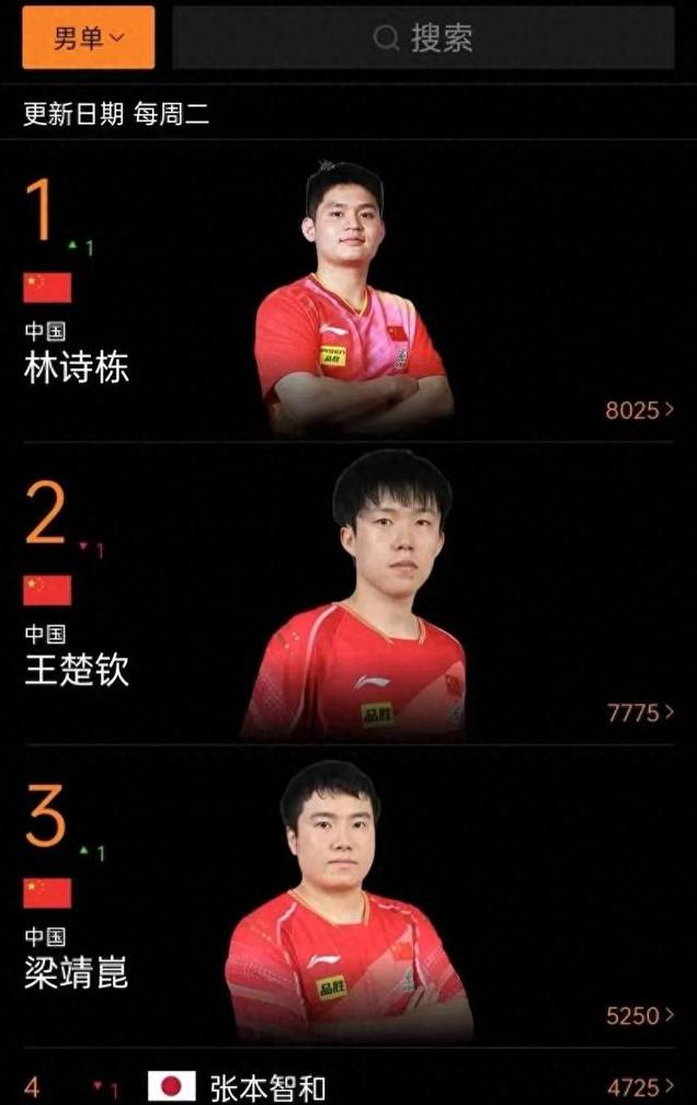 新的世界排名每周二都新鲜出炉!随着2025年新加坡大满贯林诗栋夺得男单冠军,世界排名也有了新的排名。林诗栋积分8025分,世界第一。这是林诗栋首次登顶世界第一!