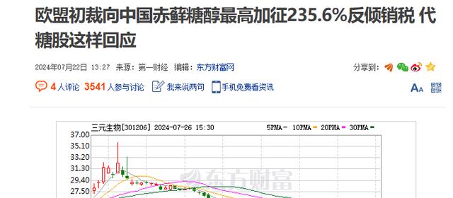 2024年7月,欧盟委员会宣布对原产于中国的赤藓糖醇征收235.6%的反倾销税。