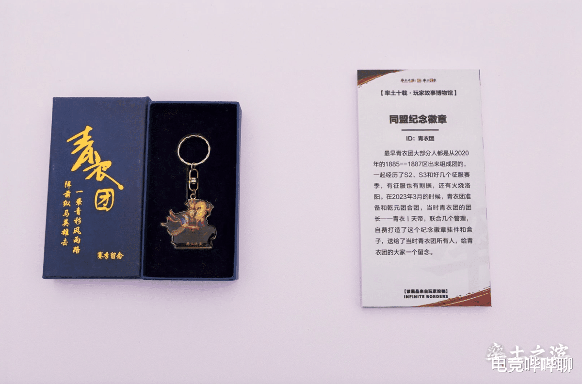 青衣团的这枚徽章,后来被《率土之滨》官方收藏到了洛阳应天门下的率土玩家故事博物馆中。它没有放在最显眼的位置,而是静静陈列在一个角落的展柜里。而在不远处的展柜中,还有一枚来自“匪|清风寨”的纪念币,那同样是一段关于“游戏之外”的故事。
