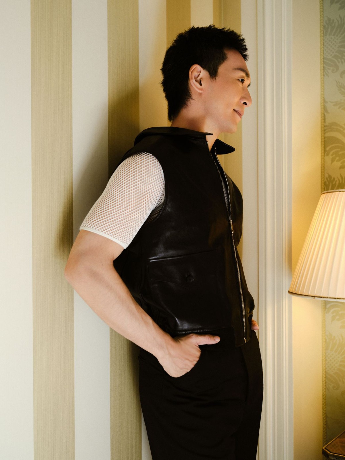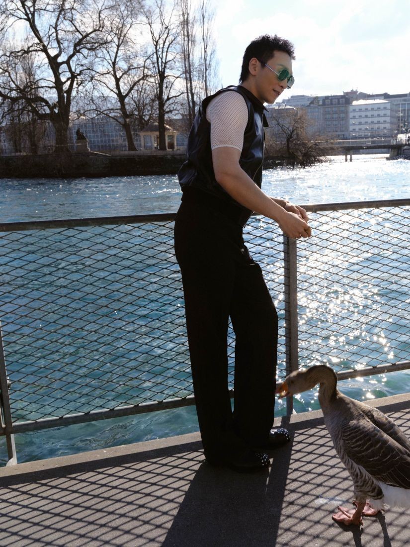 钢琴艺术家吴牧野穿着 Bally 2025 春夏男士皮质马甲、白色镂空短袖和黑色长裤,配以 Spiegel 铆钉牛津鞋,别致廓形勾勒魅力型格,在钢琴曲之下演绎硬朗不失个性的摩登风采,弹指间悠扬旋律萦绕。