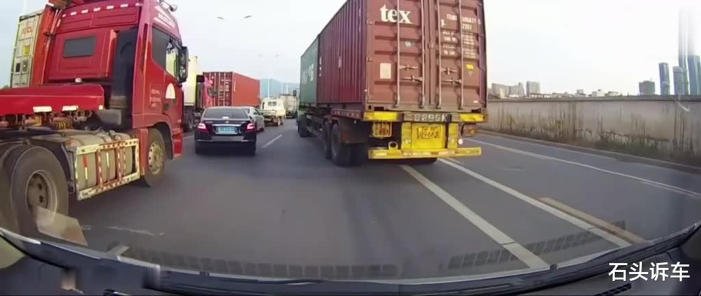 如果开在两辆泥头车中间,哪怕只有几秒钟,我也会感觉到不安全,就会想办法离开的。