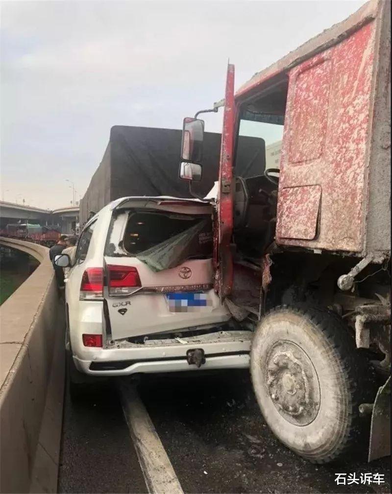 仅仅几秒种后,后方又一辆大车开过来了,从视频上看,一点刹车痕迹也没有,就这样直接撞上来,小车被夹在两辆大车之间,车子都严重变形了,里面的人大概率是活不成了。