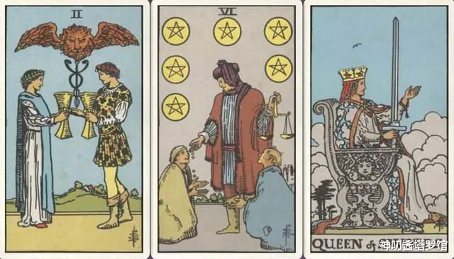 牌:圣杯二+ 星币六+ 宝剑皇后+