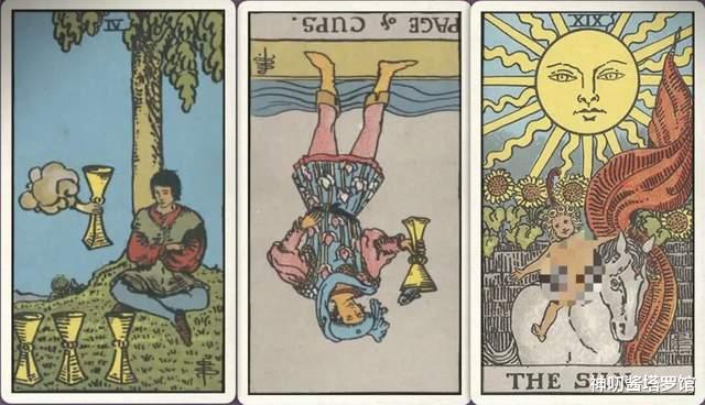 牌:圣杯四+ 圣杯侍从- 太阳+