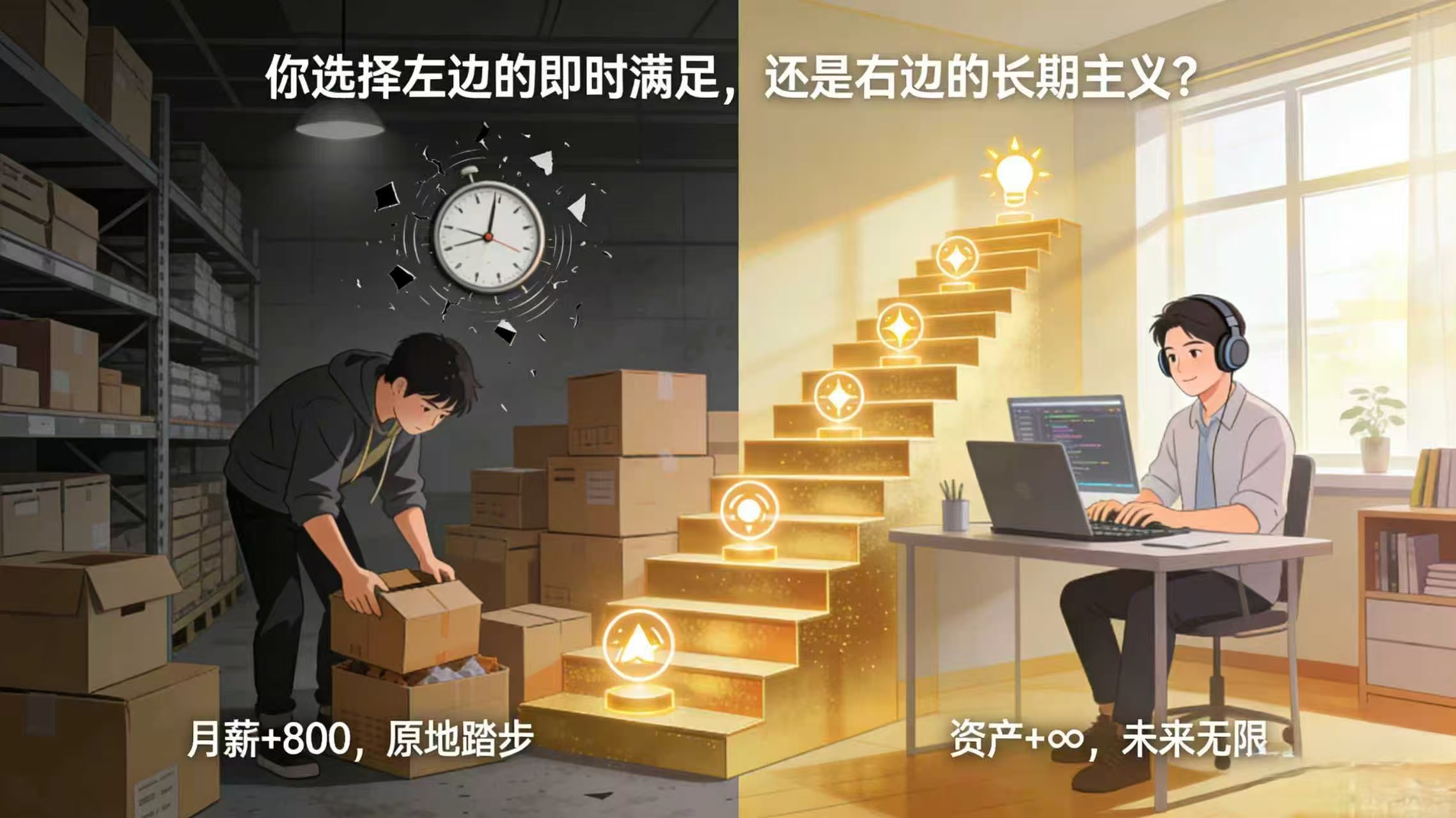 等你反应过来,同龄人已经靠专业技能实现收入跃迁,而你还在原地,用更疲惫的身体,换更不值钱的小时费。
