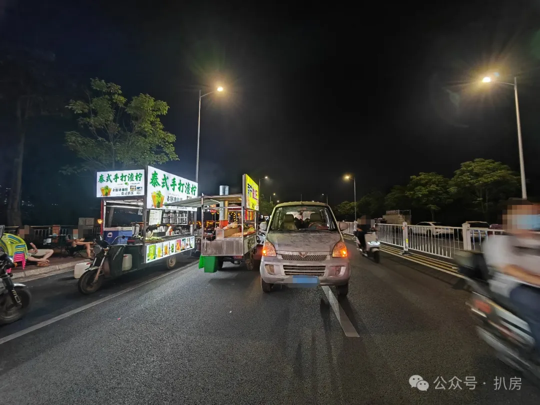 “一线江景房变一线烧烤摊”这位扒友居住在凤岭南板块,是一线看江的小区。他说:“原本买的一线江景房,如今变成一线烧烤摊。每天晚上,道路被各种小吃摊占道,回家之路很艰难。”我日前来到凤岭南板块,沿着灵龟路走,道路两边有不少小吃摊,特别是靠近江边的路段。当天是非周末,现场起码有50家以上小吃摊。也许周末、节假日出摊更多。