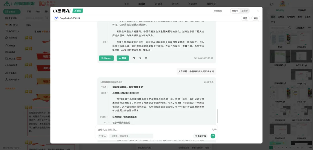 我们先用AI工具来快速创作。以小墨鹰为例,在文章编辑页面,你只需要输入一个标题或几个关键词,它的AI写作助手就能为你快速生成一篇结构完整、语句通顺的草稿。这解决了“从0到1”的创作难题,效率很高。