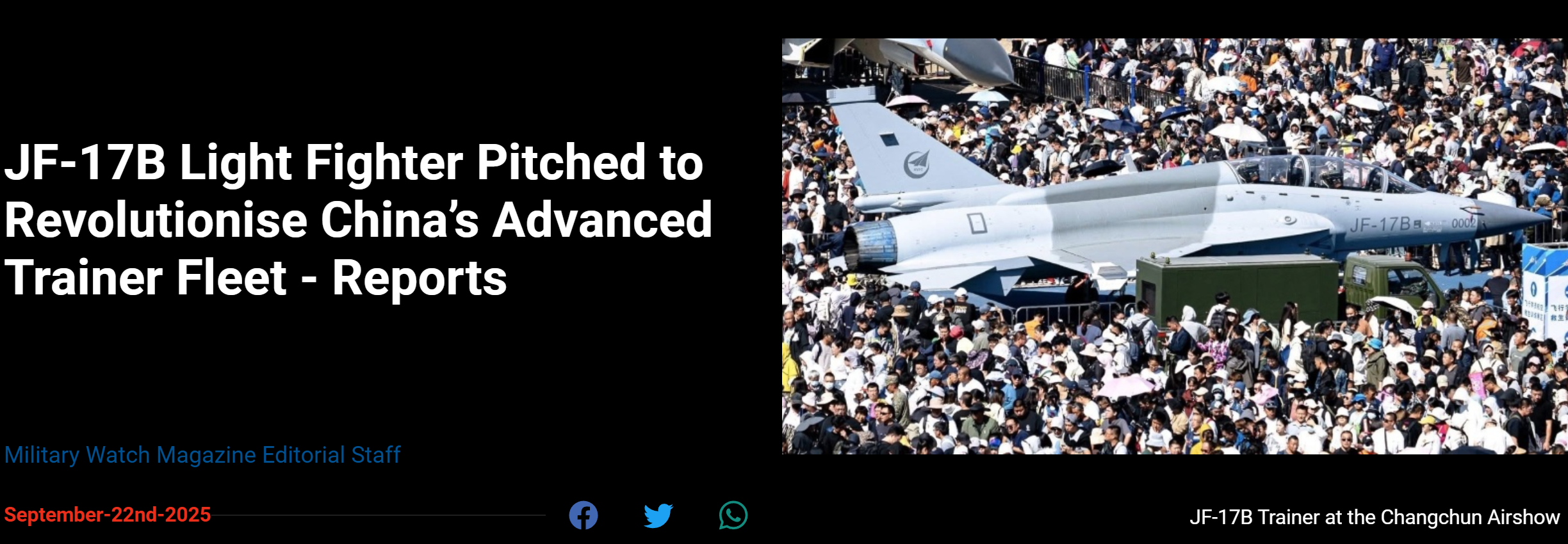 而美媒《军事观察》就提出了一个有几分道理的猜测。《军事观察》认为,双座枭龙之所以亮相长春航展,是因为成飞正在向人民空军推销枭龙战斗机,认为双座枭龙可顶替教练-9和教练-10,作为教练机使用。