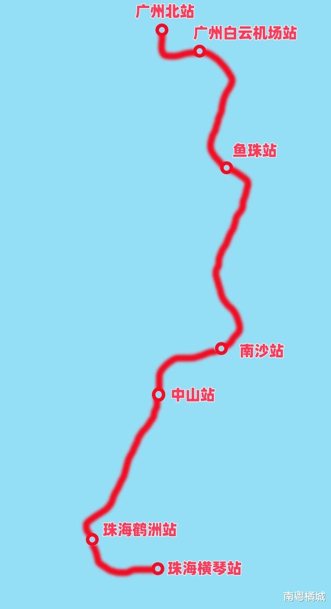 根据资料显示,早在2021年,广珠(澳)高铁便同时纳入国家“十四五”铁路发展规划和《广东省综合交通运输体系“十四五”发展规划》,定位为珠江西岸重要的南北向国铁大通道。2022年3月,珠海鹤洲至横琴段率先通过可研评审;2024年1月,广州北至珠海鹤洲段完成可研鉴修,线路走向、车站规模、投资模式基本敲定。进入2025年,横琴高铁站选址正式落地:车站位于合作区港澳大道与中心大道交汇处西北象限,按3台6线布置,并预留与澳门轻轨西延的接轨条件,未来可实现“下高铁、上轻轨、通关澳门”的无缝换乘。