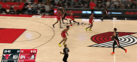 公牛的多次针对克林根不成,也让开拓者有了更多转换进攻抓错位的机会,格兰特吸引吉迪的协防,阿芙迪亚接球三分命中。