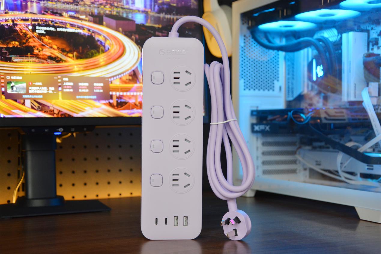要说这款奥睿科分控小胖条排插,它的颜值设计非常符合我的心意。除了常规的黑白配色外,还增加紫色、蓝色两种配色版本,让桌面格调随喜爱选择。