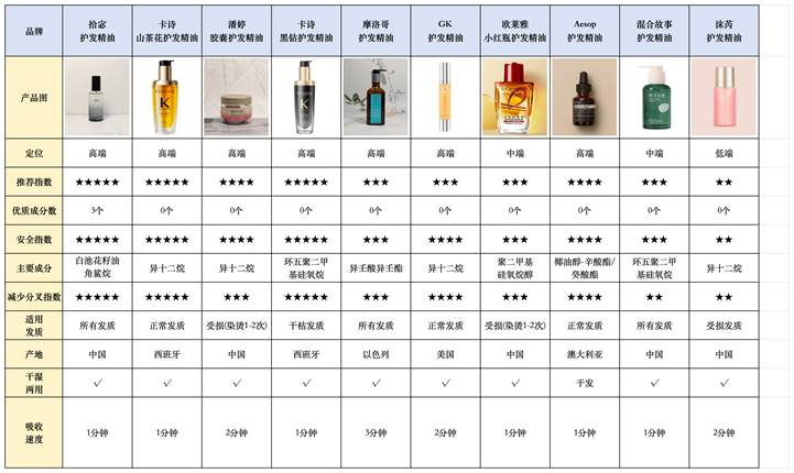 大家请先看看这几款护发精油的的基础概览,初步了解它们的区别: