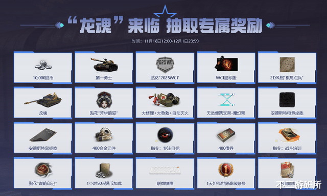 那么这些WCI券有什么作用呢?首先它可以用来参与活动抽奖,有概率开出赛事主题坦克“龙魂”,也可能有电脑支架、键盘之类的外设。如果你忘了抽奖也没有关系,这些WCI券最后都会以1:100的比率换成银币,发到游戏账号上。