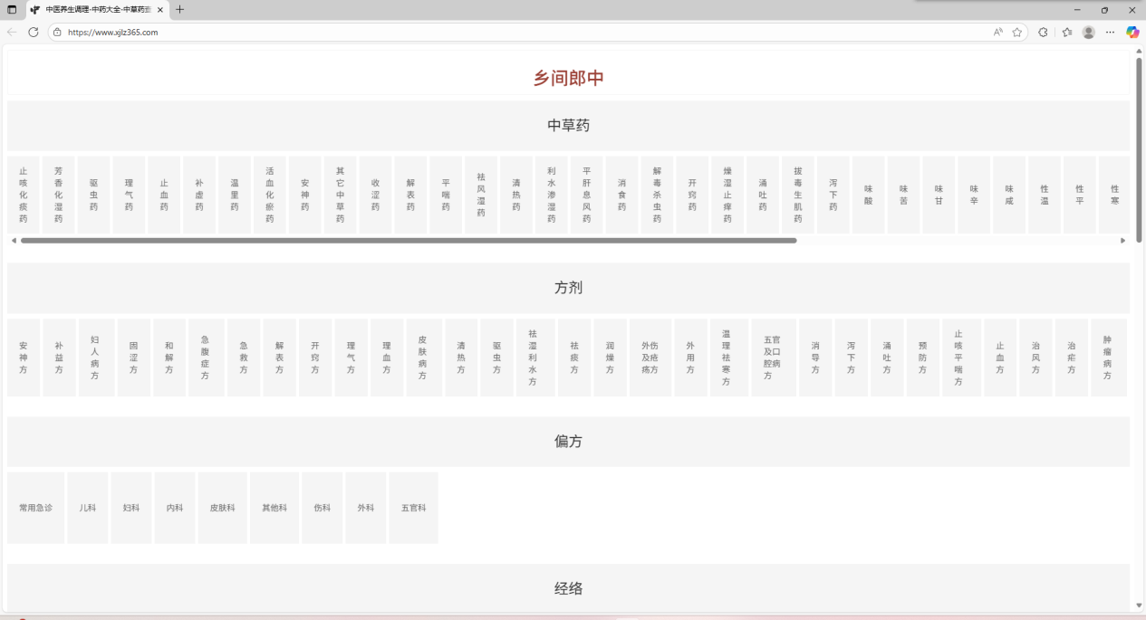 10、乡间郎中这是一个汇聚了大量药方和中医药材的网站,可以在这里了解到每种药材有哪些功效以及用法、用量和禁忌等,还可以根据病症来了解对应的药方,或是通过病症来了解哪些穴位可以缓解症状,并且还有适合男性或者女性的食疗推荐和养生茶坊,而且还能看到不同的节气,应该去吃些什么,网站内艾灸、拔罐、刮痧这些方法都有,真心建议所有注重健康、爱好养生的人都收藏起来,真的不错。