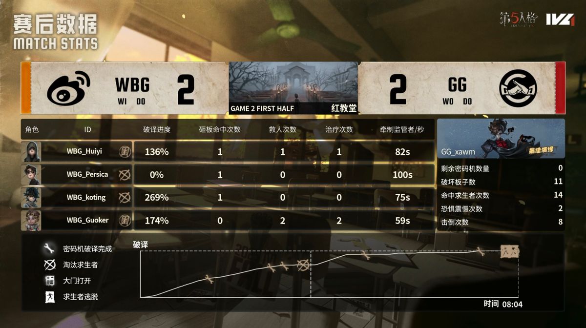 2025年11月7日,第五人格IVL秋季赛常规赛第六周第一日的比赛结束。在当天的比赛中,北京WBG以2胜0平0负的战绩(12:5)击败了成都GG,以下是本场比赛战报。
