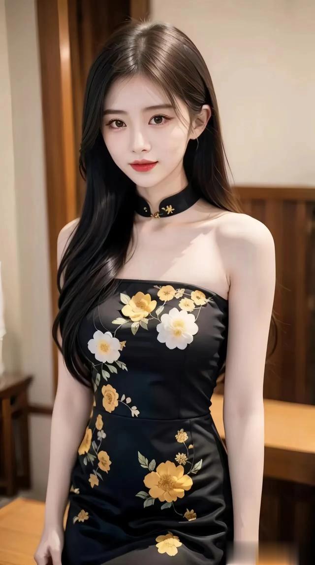 美女壁纸‖优雅黑裙配金花,惊艳一瞥!