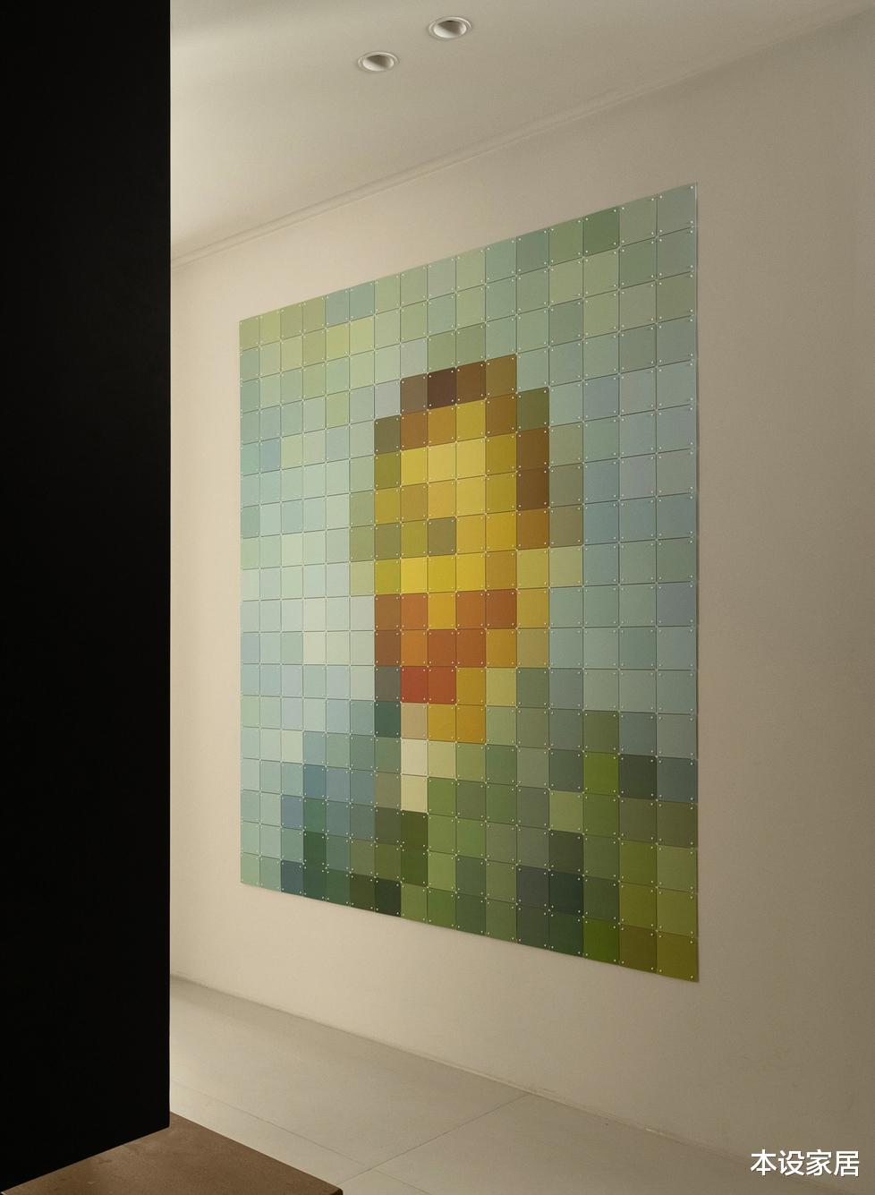走道的墙面上,挂着一幅母女俩手工制作的马赛克画,为空间增添了一份艺术性。