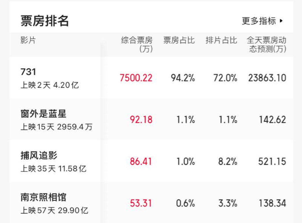 9月18日,电影《731》正式上映。这部聚焦历史伤痛的作品上映后排片率居高不下,票房表现远超预期,甚至超越了同期热门影片。