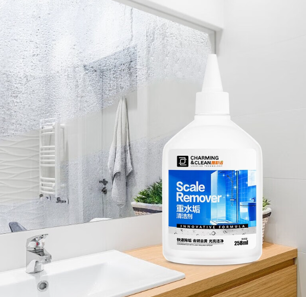 一、先搞懂:浴室水垢难清的核心原因浴室水垢主要是硬水中的钙、镁离子与肥皂、沐浴露中的成分结合,长期沉积形成的碳酸钙、碳酸镁复合物,质地坚硬且附着力强。普通清洁剂难以渗透分解,而浴室不同区域的水垢还存在差异:玻璃门多为水痕型轻水垢,瓷砖缝和花洒则易堆积顽固重水垢,马桶还会混合尿碱形成复合型污垢。因此选清洁剂需"对症下药",兼顾针对性与材质安全性。
