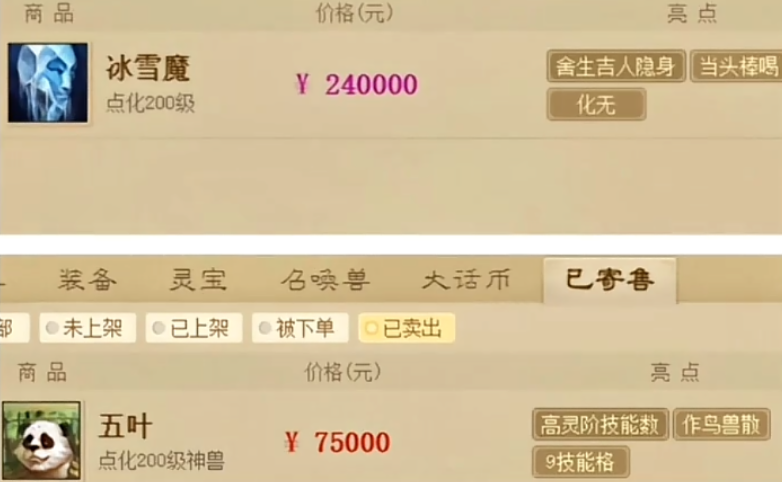 大佬疯狂囤积化无神兽吗?其实为了补强还是囤了一些战术性宝宝,比如24万的双终极化当冰块,还有作鸟五叶,现在的终极神兽价格和前两年比是便宜不少。陆左老板还给自己的6阶敏项链洗出了高召特技,看来这位大佬是准备挑战全服第一敏魔的宝座,我们拭目以待。