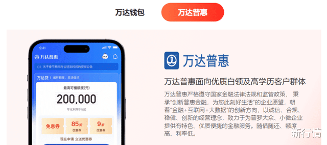 其中,万达钱包是万达集团旗下面向万达业态客群的科技金融产品,智能整合先享后付、小额信贷、充值预付等金融服务功能。