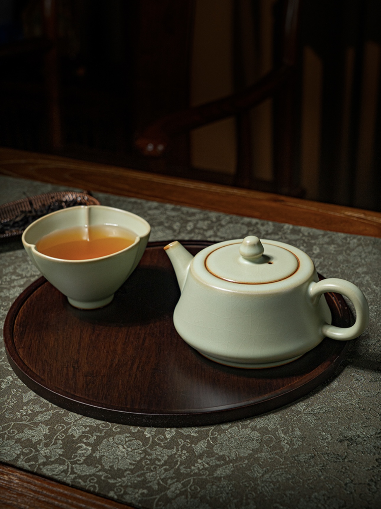 此外,粉青釉色具有极高的宽容度,其清雅底色几乎不挑剔茶类。无论是绿茶、红茶或乌龙茶,皆能忠实呈现茶汤本色。真正做到不吸味不串味,一器可品百茶。