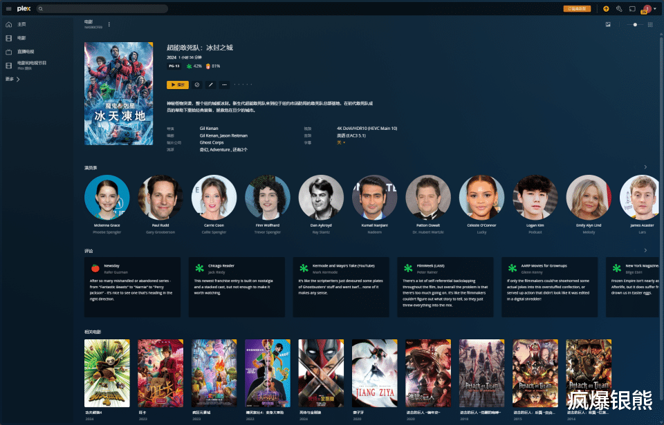 添加完成后,Plex的扫描速度超快,而且对于影片的匹配精准度也很高,这也是为何其受众这么多的重要原因。