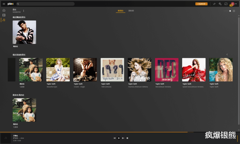 3、音乐库如何搞?对于音乐发烧友而言,想要打造HIFI音乐库,威联通APP Center中的Roon这个软件还不错,推荐的人也不少。不过Roon的费用并不低,包年118美刀,包月12.99美刀。对于笔者这种白嫖党而言断然是不会用的,幸好PLEX除了可以打造私人电影库外,其还能用于音乐库的搭建。,而且大部分功能是免费的。