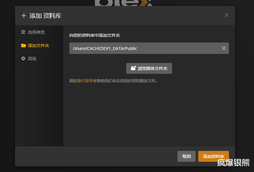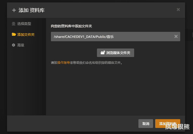 第二部选择NAS中存储音乐的文件夹,添加到资料库中。