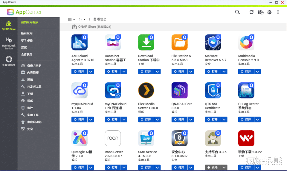 默认系统下,威联通本家研发的软件数量在NAS行业中也数一数二,在专业性方面称他为业界领头羊也不过分。例如HybridMount 文件型云网关、HBS 3 文件备份同步中心、Qsirch 智能 AI 搜索、Qfiling 文件归档、 Qsync Central 文件同步中心等,都为用户带来极大的使用便利和数据保障。另外,威联通的软件生态融合也十分强大,在APP Center中更为用户提供了超丰富的三方软件功能,用户可根据自己的使用需求,自行选择安装适合自己的应用。