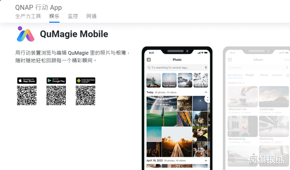 对于手机党用户而言,QuMagie也提供了IOS和安卓两个移动端的软件用来方便用户在手机端随时随地浏览和上传下载喜欢的照片。